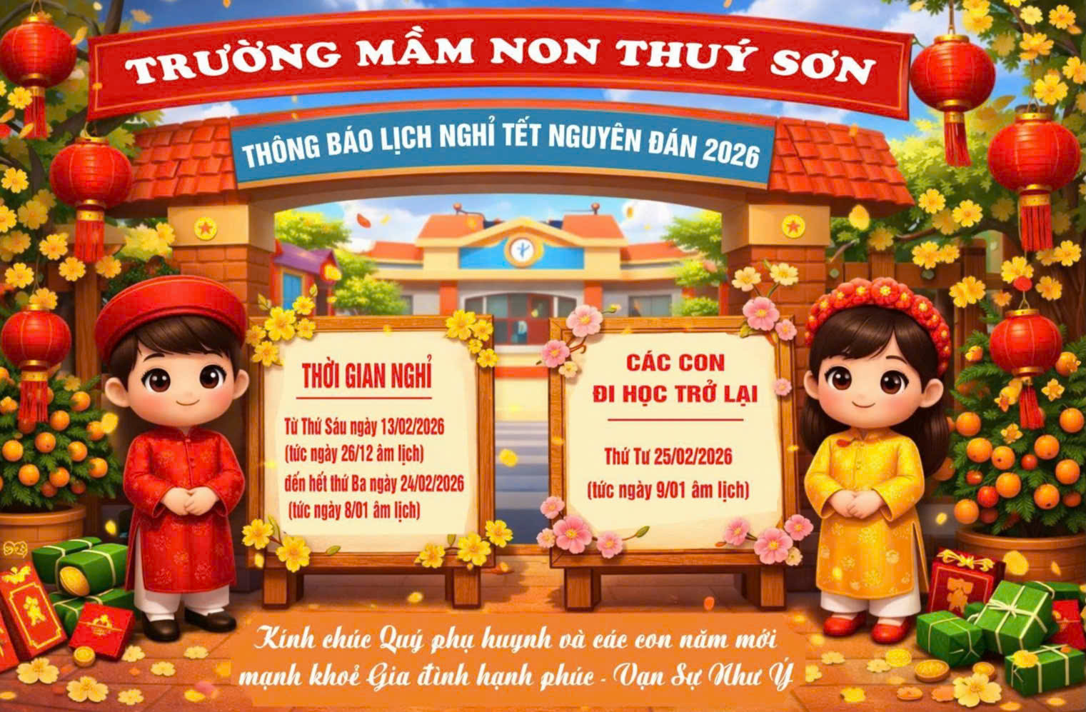 Thông báo lịch nghỉ Tết âm lịch 2026