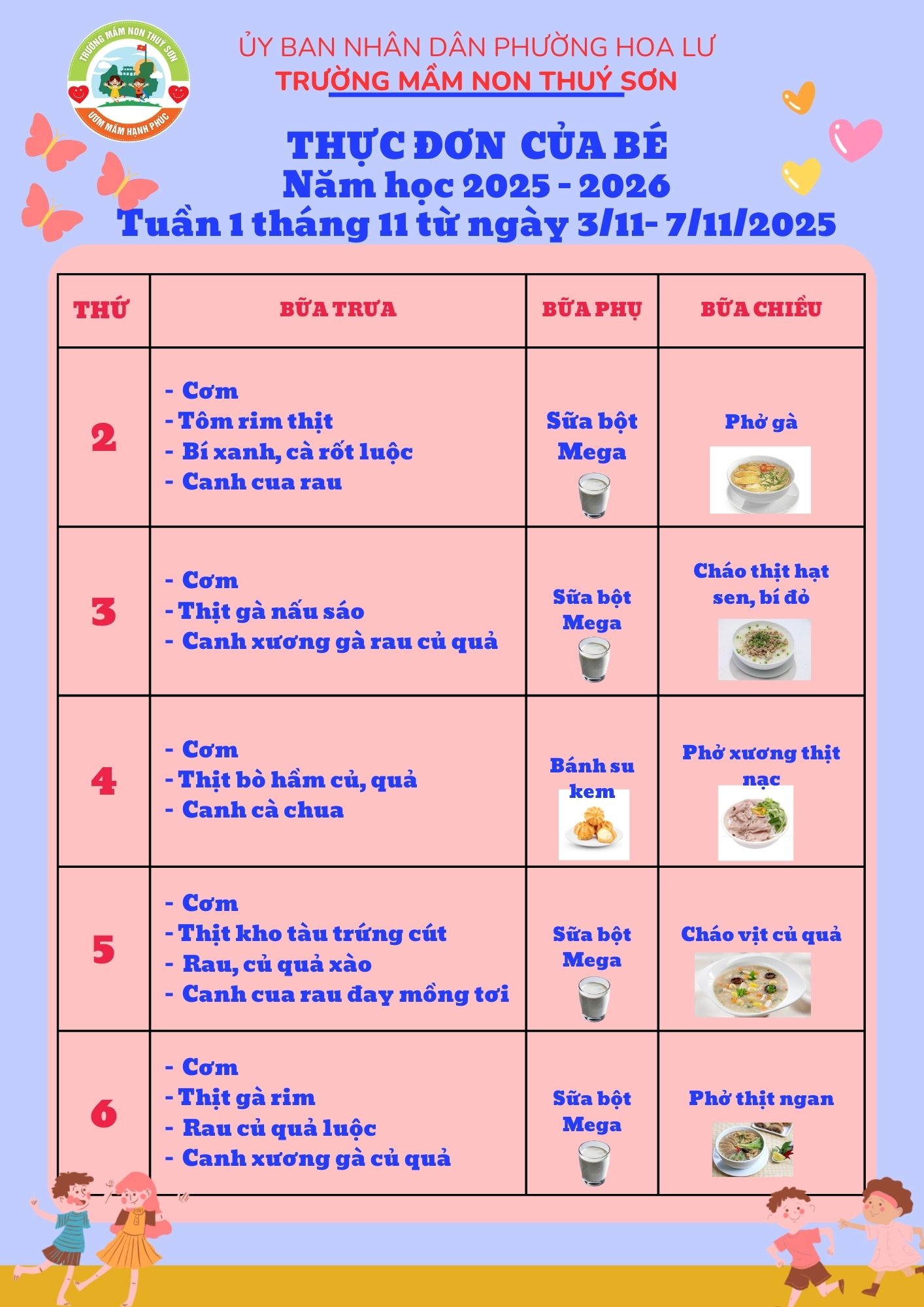 Thực đơn tuần 1 tháng 11 năm 2025