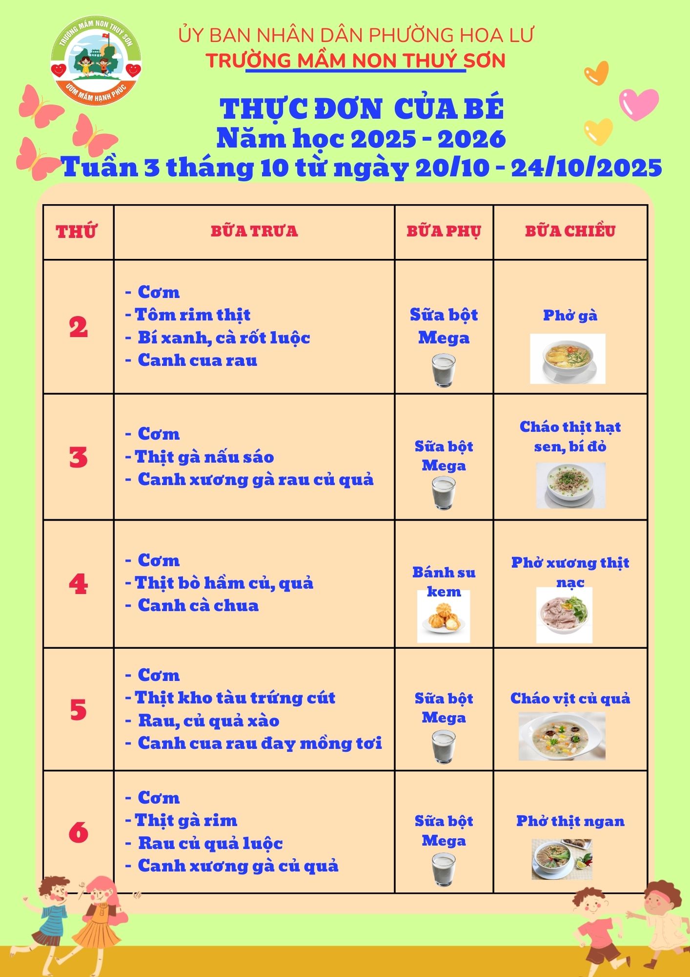 Thực đơn tuần 3 tháng 10 năm 2025