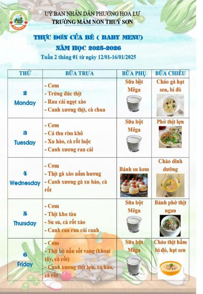 Thực đơn tuần II tháng 4/2026